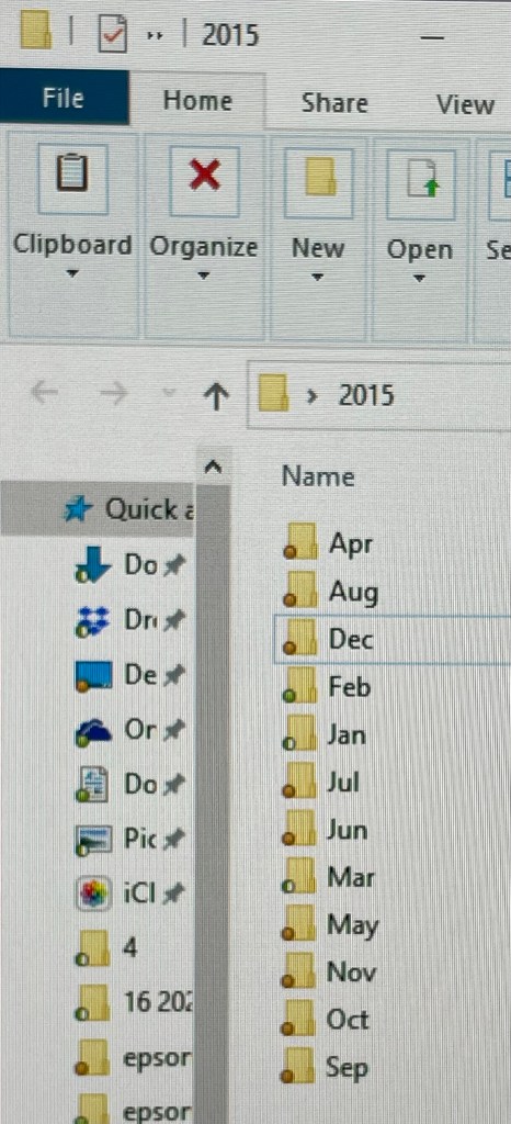 I know lots up people ask this question to themselves and sometimes out loud to others. So many pictures; some is dusty boxes, others in piles here and there, and now days they are all uploaded and saved to a computer or cloud. The task of organizing them just seems too overwhelming. How in the world can you get started when you don’t know where anything is. I promise you, it is easier than you think. The first thing I want you to remember is “You don’t have to try to do it all at once, you didn’t create all those memories in a day so it will take time.” I am a fairly organized person, most of my pictures are backed up and save electronically. The first thing I tackled were the pictures that I had saved on a computer. These would be the easiest since most if not all of them have dates attached to them in the files. I made folders, one for each year. I started with 2006. Then in each year’s folder, I created a folder for each month.