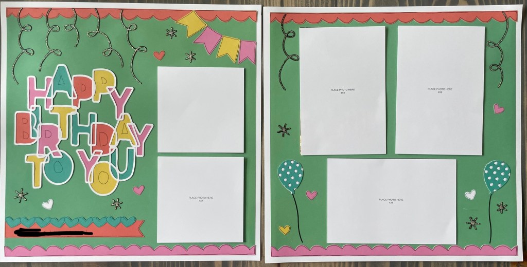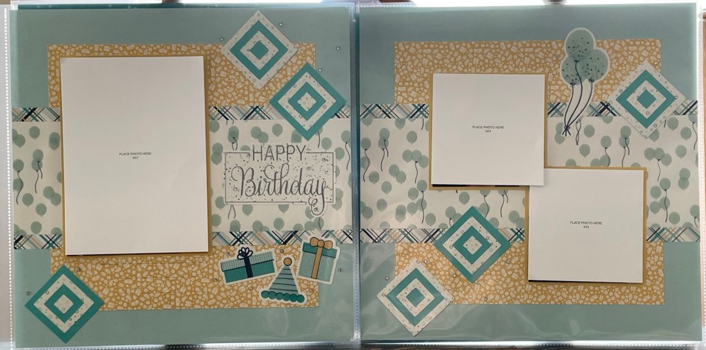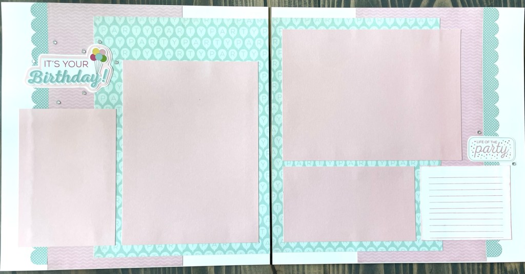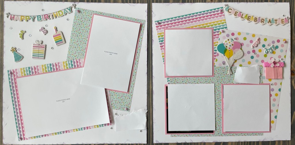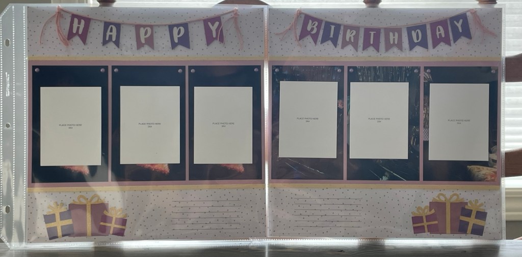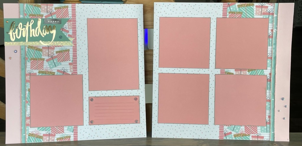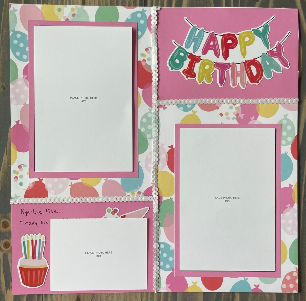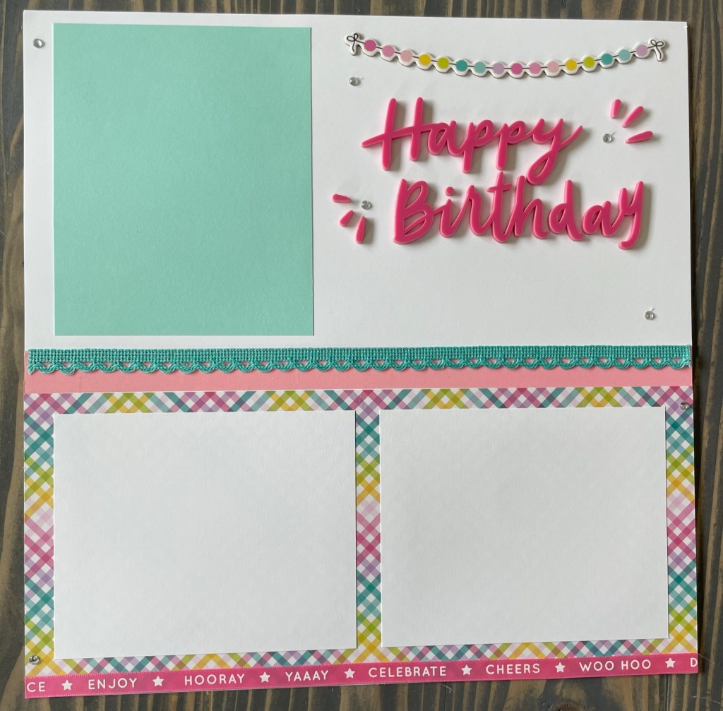 I had the cutest acrylic Happy Birthday piece. The ribbons with a great compliment to the pattern paper. I used the space under the title as a journaling spot.