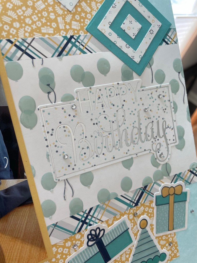 I loved the colors in this paper pack. I had two birthdays in particular that I knew it would be perfect for this paper when I found it during a local flash sale recently. The Print was a little busy for me, to fix that, I added more solid color cardstock.
