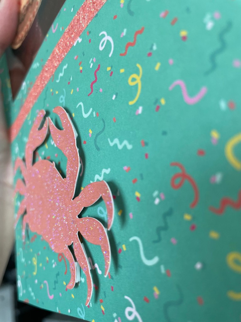 This reddish orange color drove me the most crazy. I figured I should tackle it first. I matched the color papaya to it. Which then made me to think of a crab and oh yeah my daughter used to always want to eat a red lobster for it birthday, well everyday lets be honest. I used the papaya shimmer trim and add fairy dust to crabs. It all came together for an okay layout in the end.